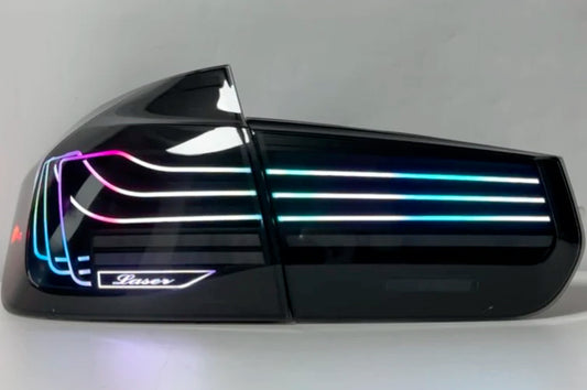 BayOptiks - BMW F30 3 Series & M3 Tail Lights - CSL RGB Colour Chasing Laser Style (Smoked)