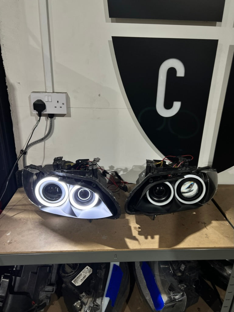 You're purchasing a pair of custom headlights which have been prebuilt using a second hand set of headlights to the following spec: